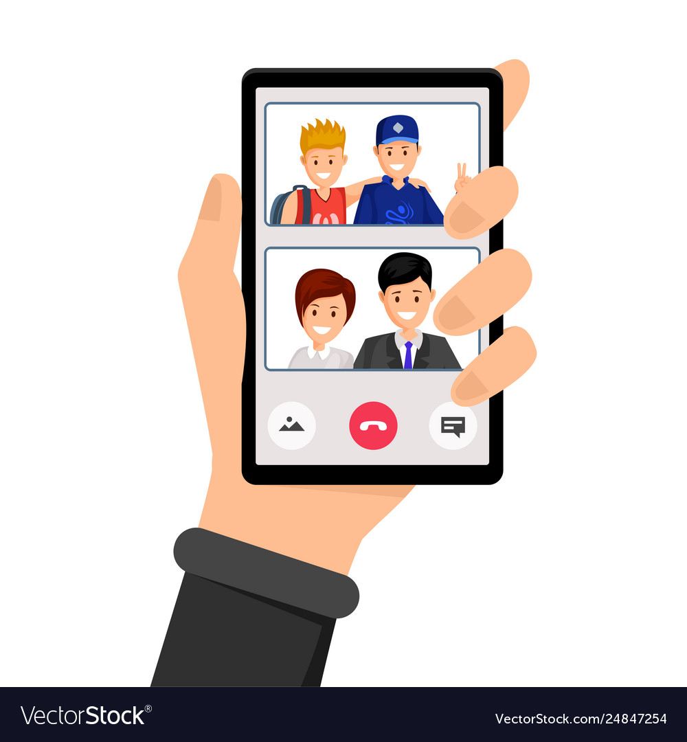 20+ Group Video Call Clipart US. Download video call images and photos. Video call group application on smartphone design concept.